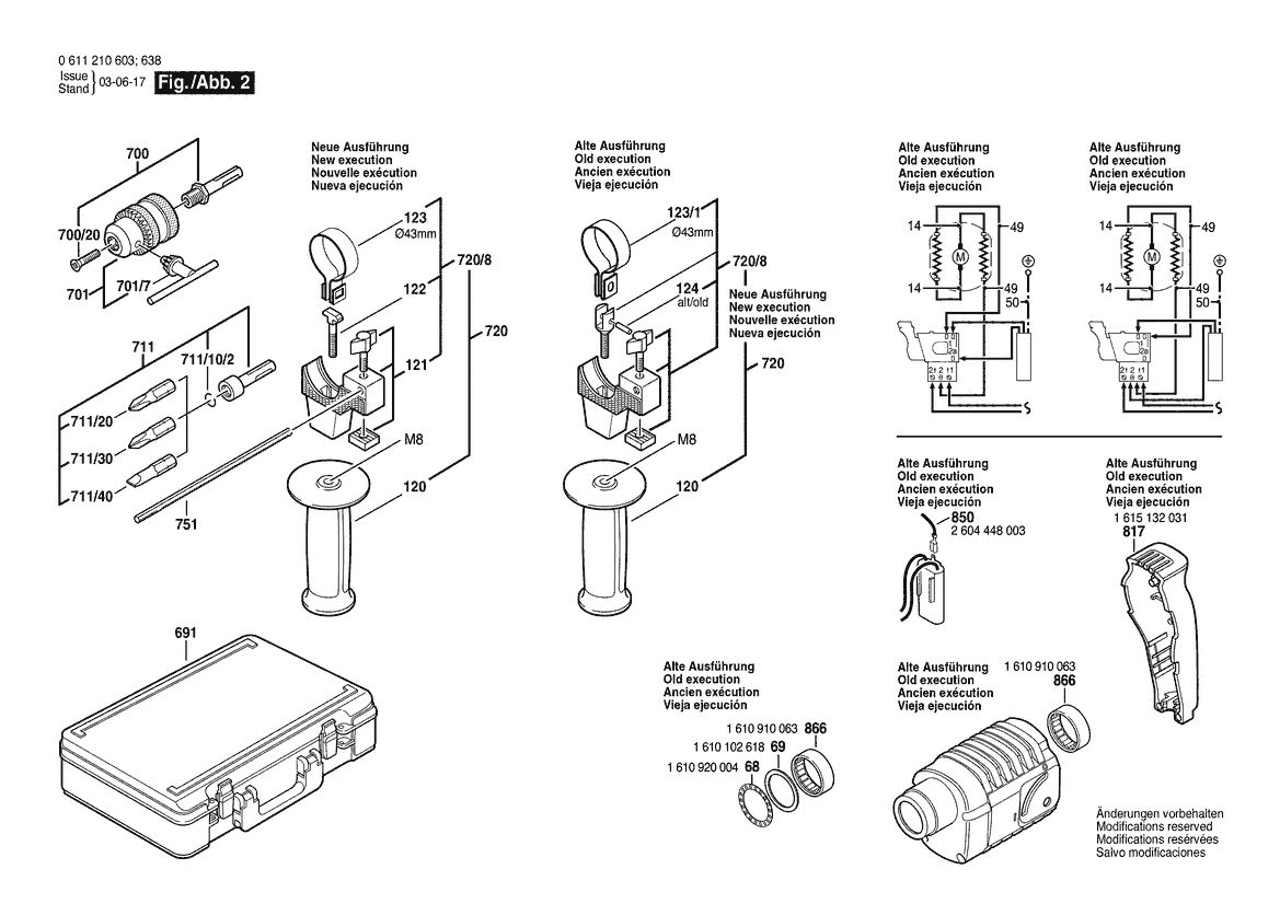 Zeichnung Sollten Sie Fragen zu einem Ersatzteil vom Bosch Bohrhammer UBH 2/20 SE | 240 V | 036 - GB (0 611 210 642) haben, können Sie uns gerne eine E-Mail (mit einem Foto vom Typenschild Ihres Gerätes) schreiben oder eine Ersatzteilanfrage stellen.