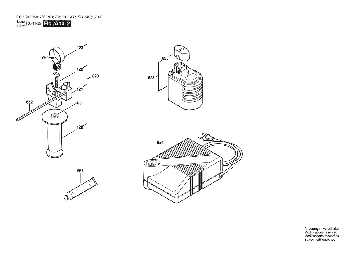 Ersatzteile für Bosch Gw-Akku-Bohrhammer GBH 24 VFR | 24 V | 001 - EU (0 611 246 760) Zeichnung 2