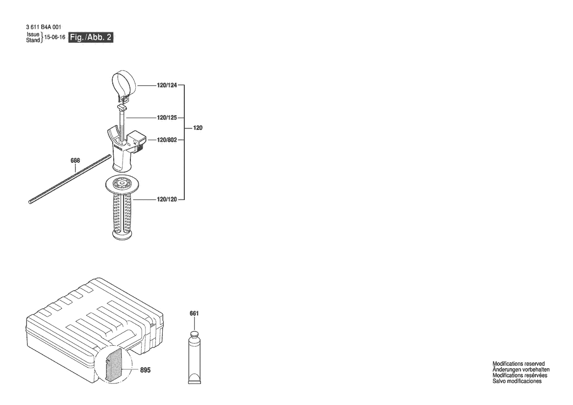 Zeichnung Sollten Sie Fragen zu einem Ersatzteil vom Bosch Bohrhammer GBH 3-28 DFR | 230 V | 044 - LAM (3 611 B4A 091) haben, können Sie uns gerne eine E-Mail (mit einem Foto vom Typenschild Ihres Gerätes) schreiben oder eine Ersatzteilanfrage stellen.