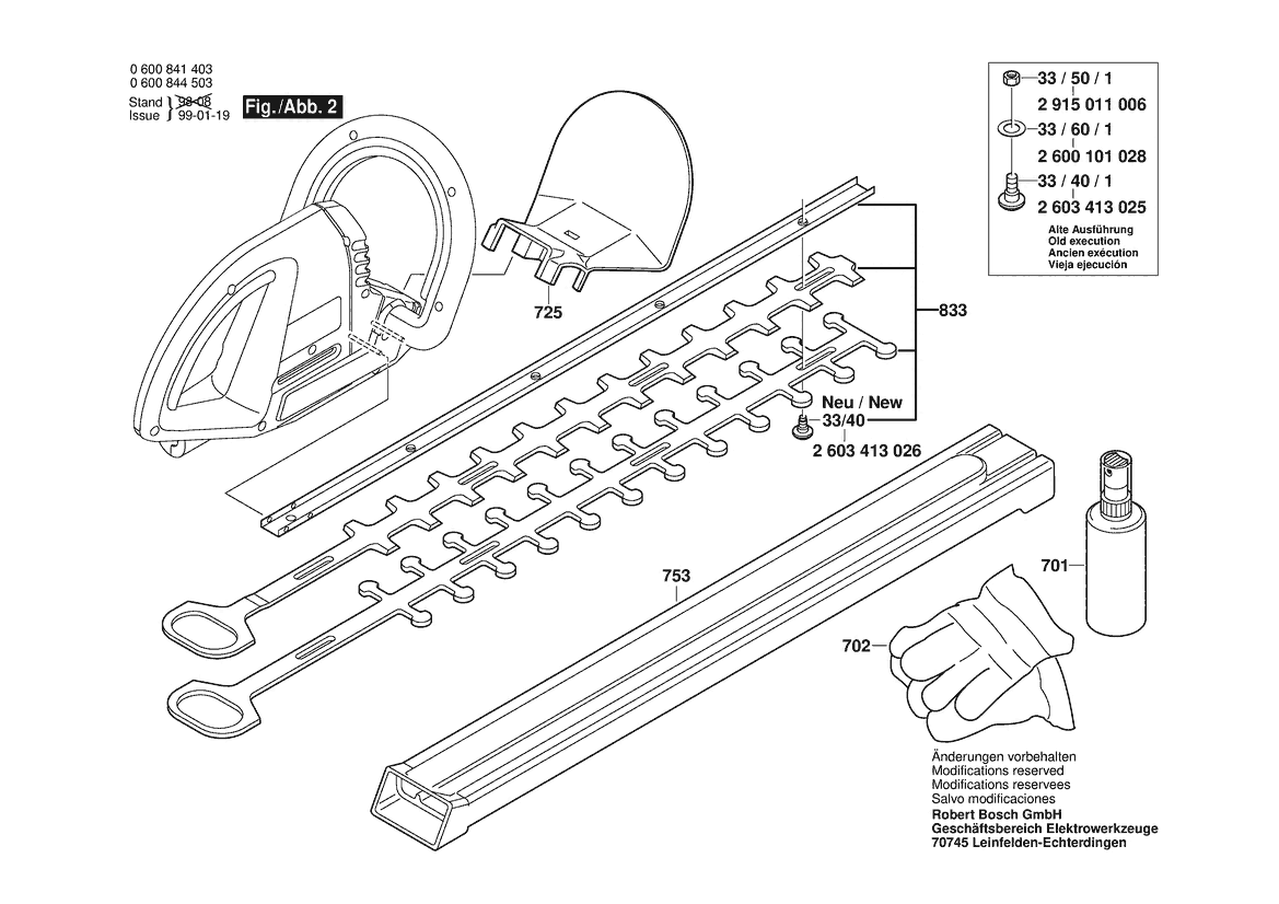 Ersatzteile für Bosch Heckenschere AHS 55-22 | 230 V | 001 - EU (0 600 844 503) Zeichnung 2