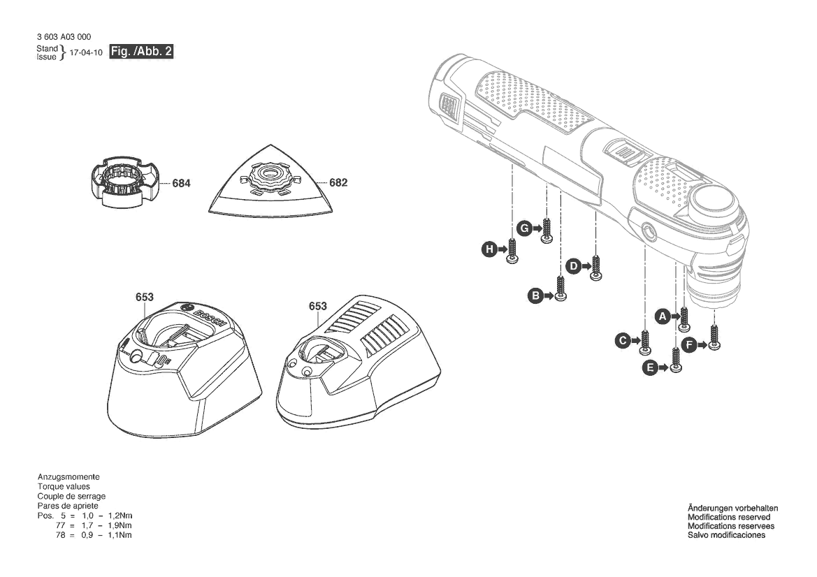 Zeichnung Sollten Sie Fragen zu einem Ersatzteil vom Bosch Multifunktionswerkzeug UniversalMulti 12 (3 603 A03 050) haben, können Sie uns gerne eine E-Mail (mit einem Foto vom Typenschild Ihres Gerätes) schreiben oder eine Ersatzteilanfrage stellen.