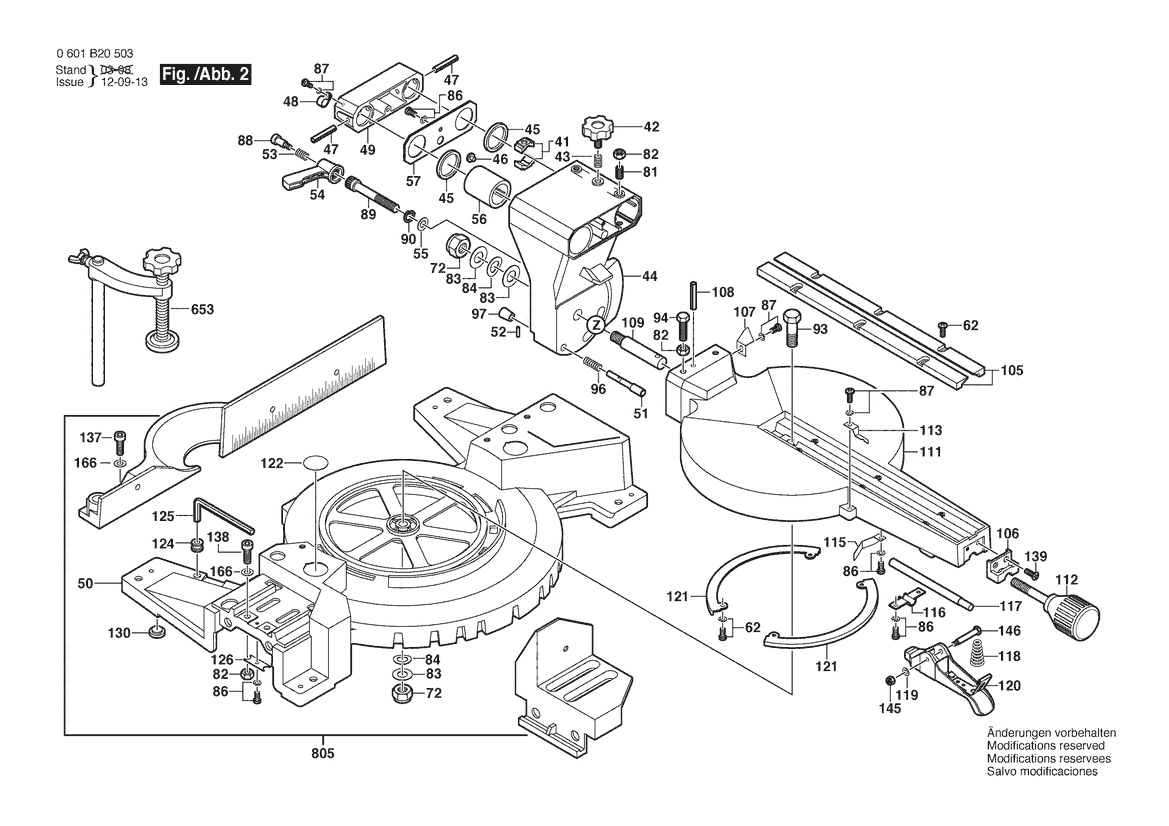 Zeichnung Sollten Sie Fragen zu einem Ersatzteil vom Bosch Kapp-/Gehrungssäge GCM 10 S | 230 V | 036 - GB (0 601 B20 542) haben, können Sie uns gerne eine E-Mail (mit einem Foto vom Typenschild Ihres Gerätes) schreiben oder eine Ersatzteilanfrage stellen.