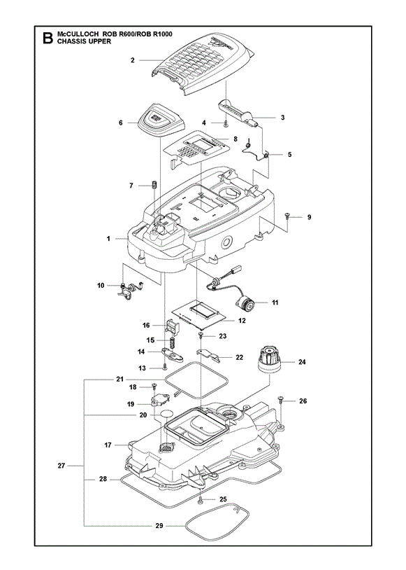 Folgende Ersatzteile für McCulloch Mähroboter ROB R600/ROB R1000 Bj. ab Jan 2017 aus der Zeichnung 2 können Sie hier bestellen: