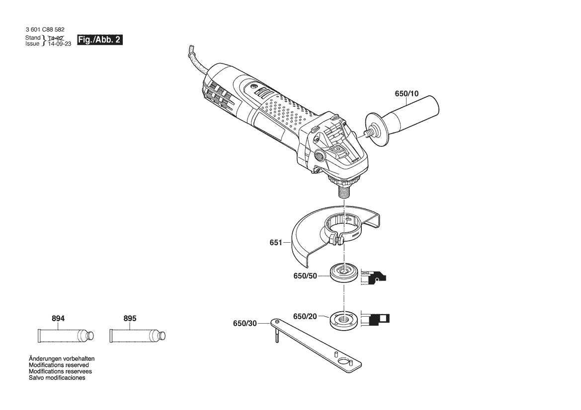 Zeichnung Sollten Sie Fragen zu einem Ersatzteil vom Bosch Winkelschleifer GWS 7-125 ET | 220 V | 009 - CN (3 601 C88 582) haben, können Sie uns gerne eine E-Mail (mit einem Foto vom Typenschild Ihres Gerätes) schreiben oder eine Ersatzteilanfrage stellen.