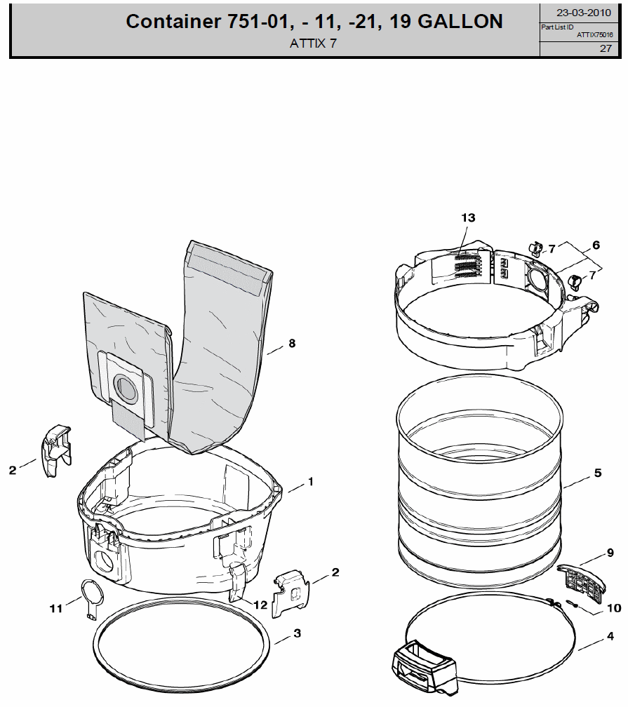 Zeichnung Sollten Sie Fragen zu einem Ersatzteil vom Nilfisk (WAP, Alto) ATTIX 751-11 - Sauger haben, können Sie uns gerne eine E-Mail (mit einem Foto vom Typenschild Ihres Gerätes) schreiben oder eine Ersatzteilanfrage stellen.
