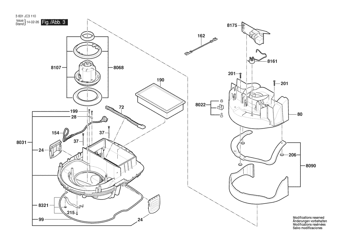 Ersatzteile für Bosch Allzwecksauger VAC090AH | 120 V | 061 - US (3 601 JC3 111) Zeichnung 3