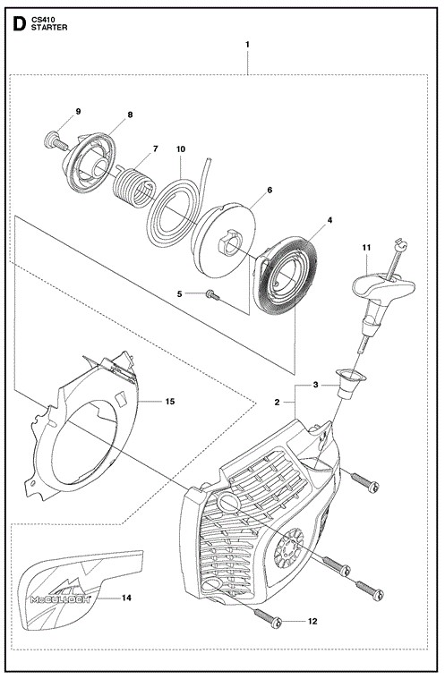 Zeichnung 4 Sollten Sie Fragen zu einem Ersatzteil von McCulloch Motorsäge CS410 Bj. ab Jul 2011 haben, können Sie uns gerne eine E-Mail (mit einem Foto vom Typenschild Ihres Gerätes) schreiben oder eine Ersatzteilanfrage stellen.
