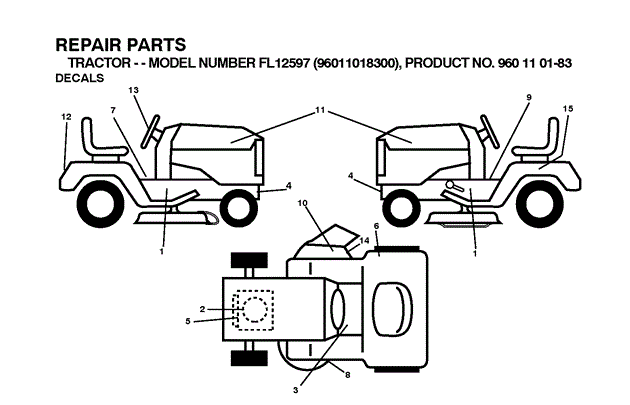 Ersatzteile für Flymo Gartentraktoren FL12597 (ab Apr-2009) aus der Zeichnung 8 Gültig für Artikelnummer: 96011018300