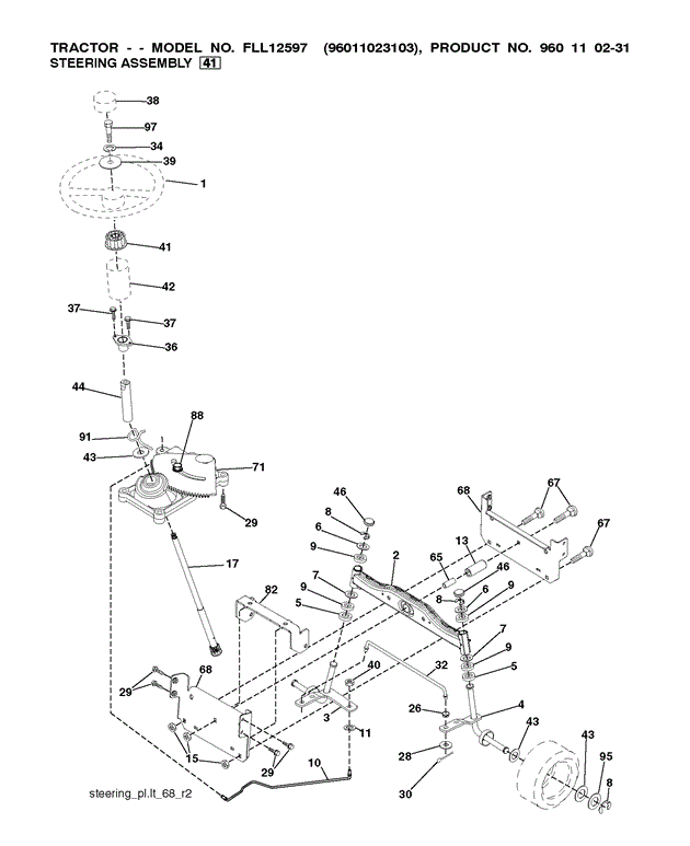 Ersatzteile für Flymo Gartentraktoren FLL12597 (ab Jun-2009) aus der Zeichnung 9 Gültig für Artikelnummer: 96011023103