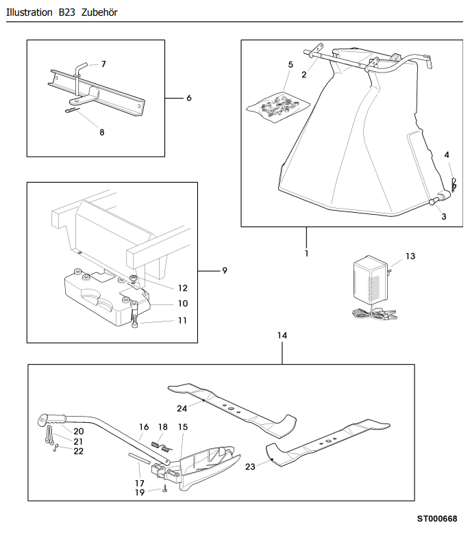 Zeichnung Sabo Rasentraktoren Heckauswurf 92-13 HF EDV-NR.SAB01060 Zubehör: