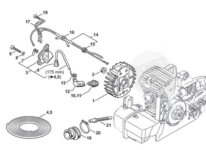 Hier finden Sie alle Ersatzteile von Stihl Benzin-Motorsägen MS 310 der Zeichnungsgruppe Zündanlage: