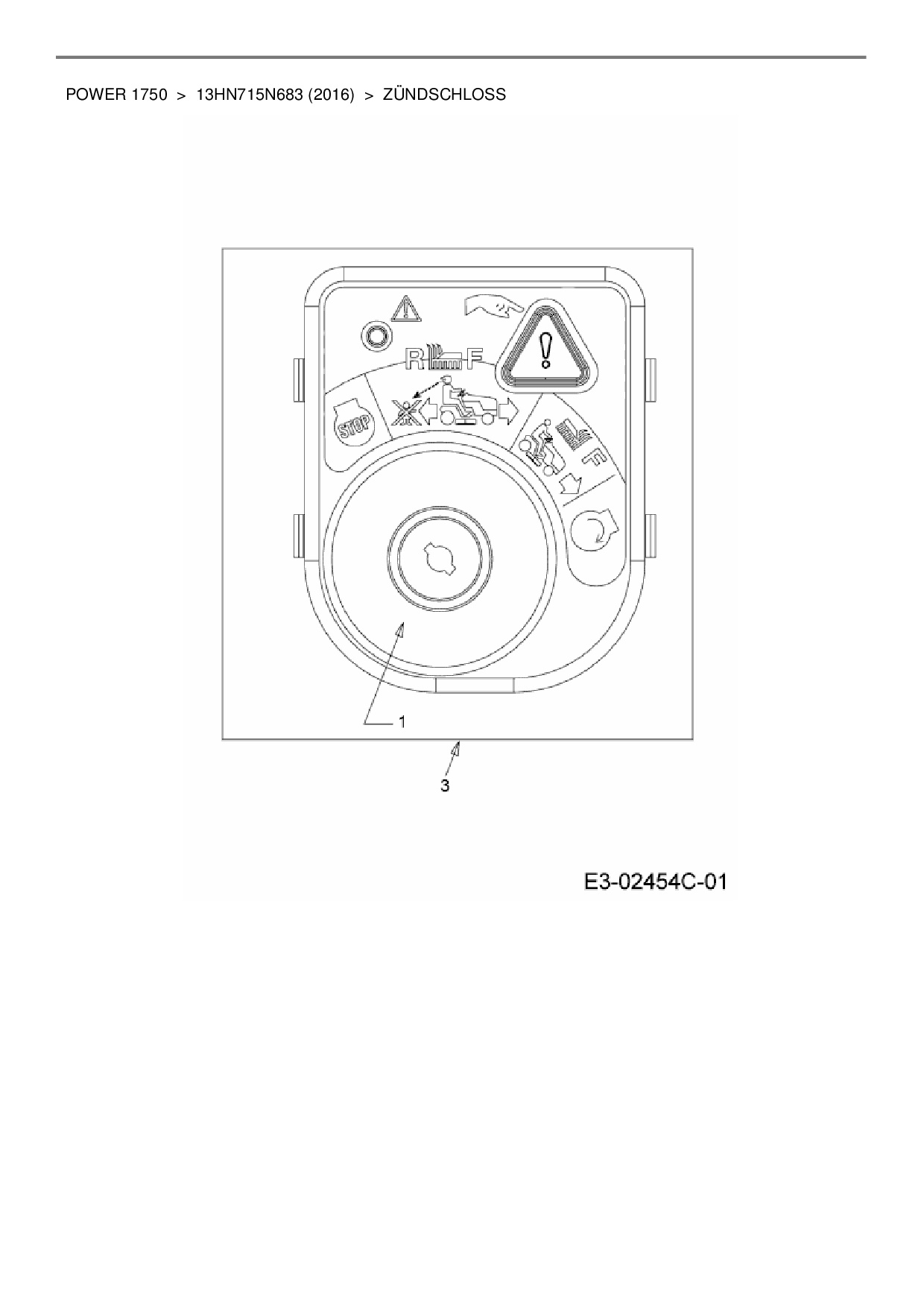 Ersatzteile für Rasentraktor MTD Power 1750 aus der Zeichnung Zündschloss: