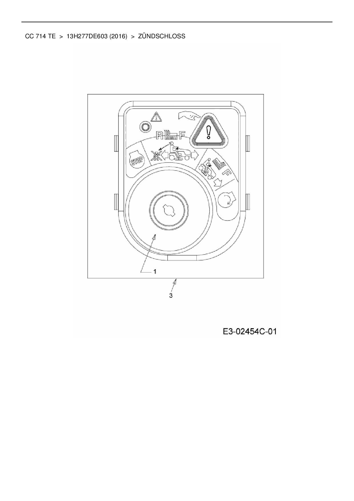 Ersatzteile für Rasentraktor Cub Cadet CC 714 TE aus der Zeichnung Zündschloss: