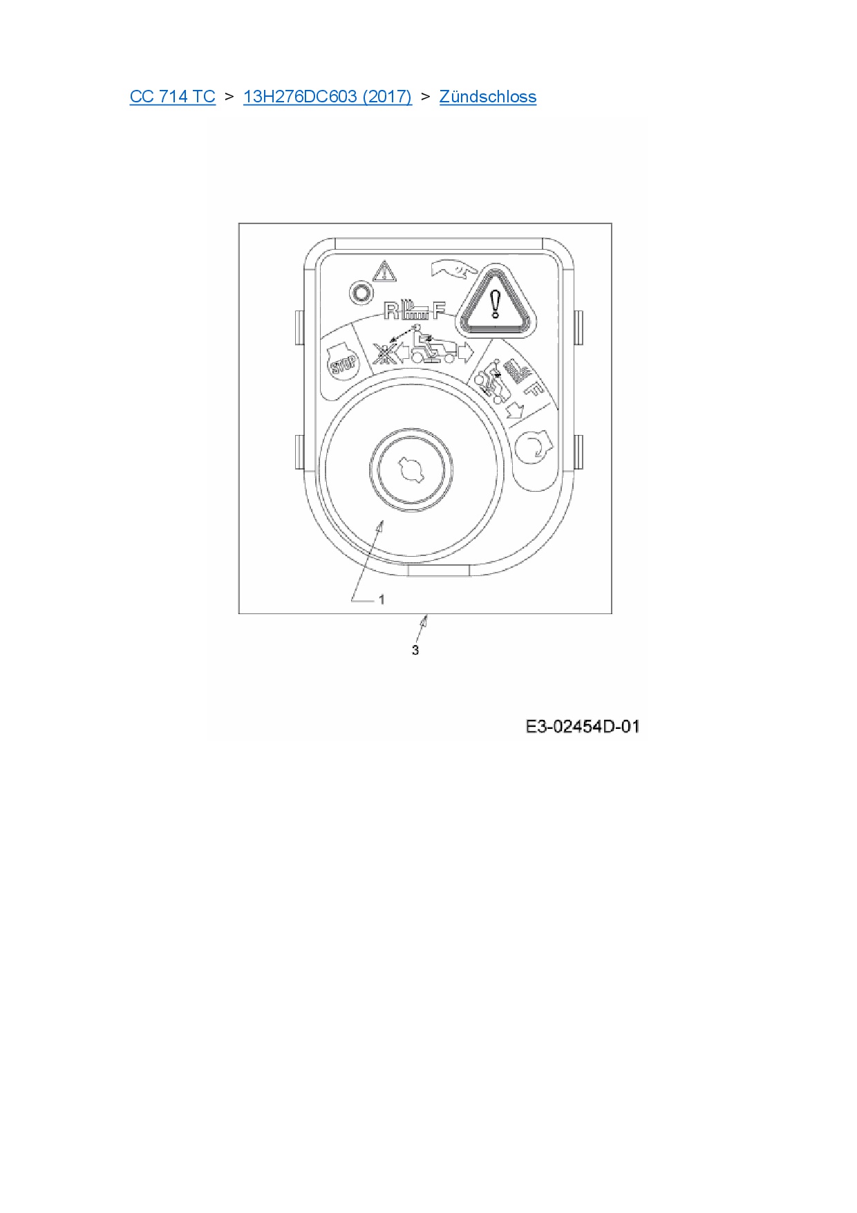 Ersatzteile für Rasentraktor Cub Cadet CC 714 TC aus der Zeichnung Zündschloss: