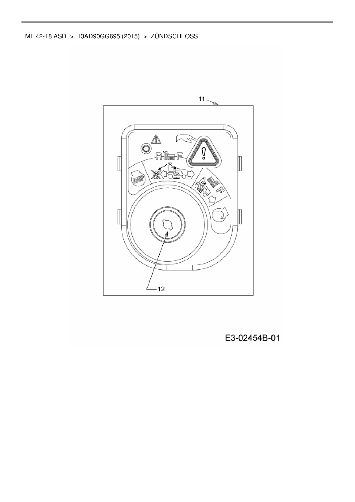 Ersatzteile für Rasentraktor Massey Ferguson MF 42-18 ASD aus der Zeichnung Zündschloss: