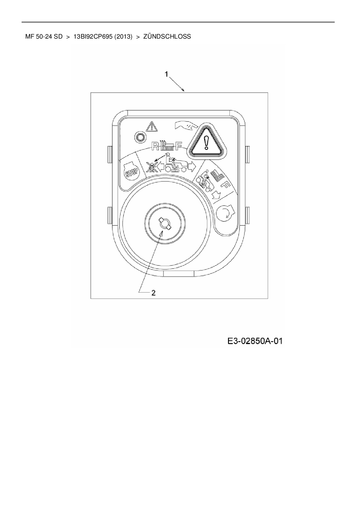 Ersatzteile für Rasentraktor Massey Ferguson MF 50-24 SD aus der Zeichnung Zündschloss: