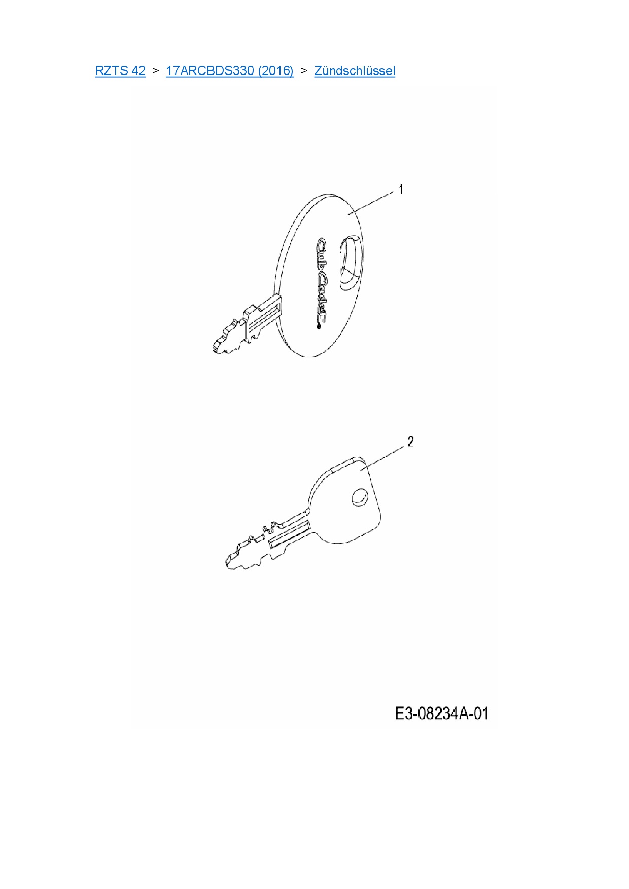 Ersatzteile für Zero Turn Cub Cadet RZTS 42 aus der Zeichnung Zündschlüssel: