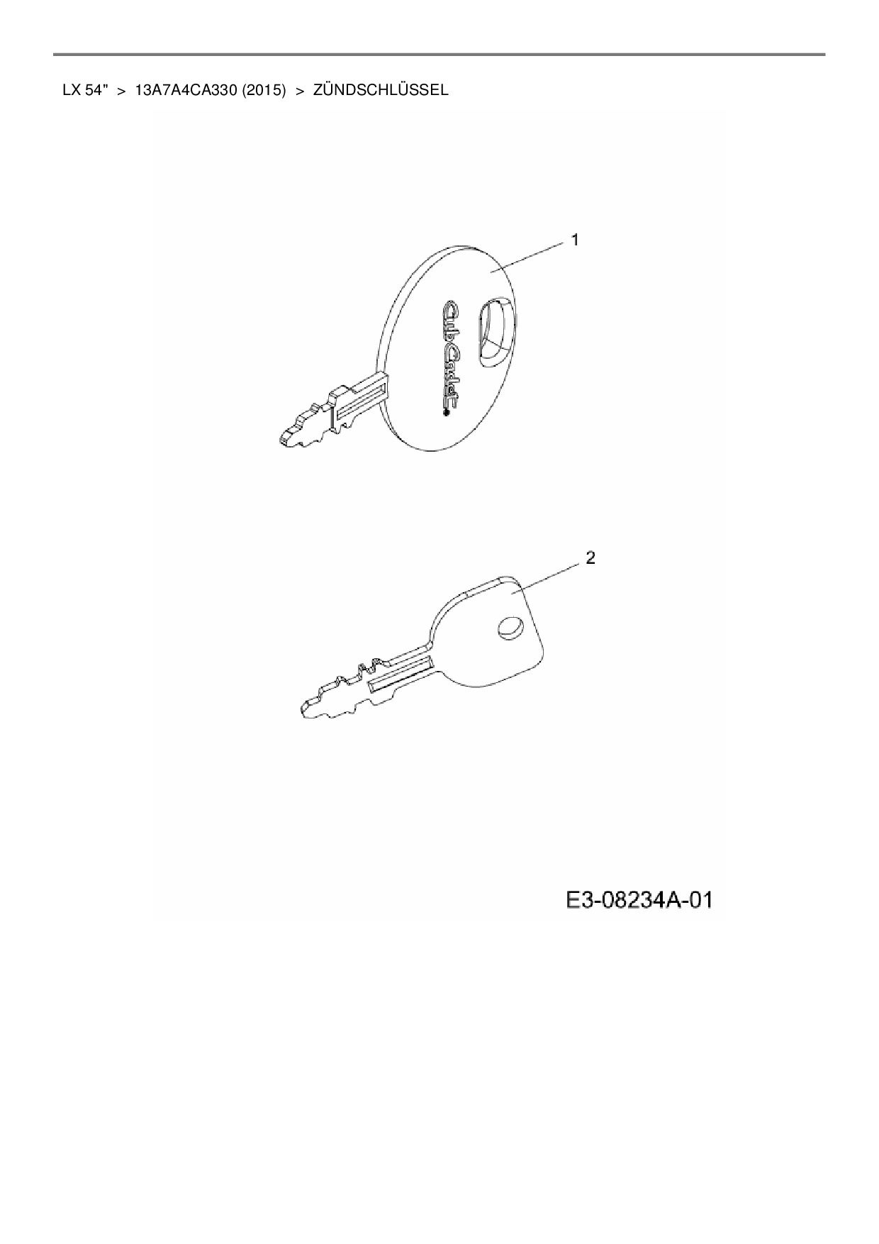 Ersatzteile für Rasentraktor Cub Cadet LX 54" aus der Zeichnung Zündschlüssel: