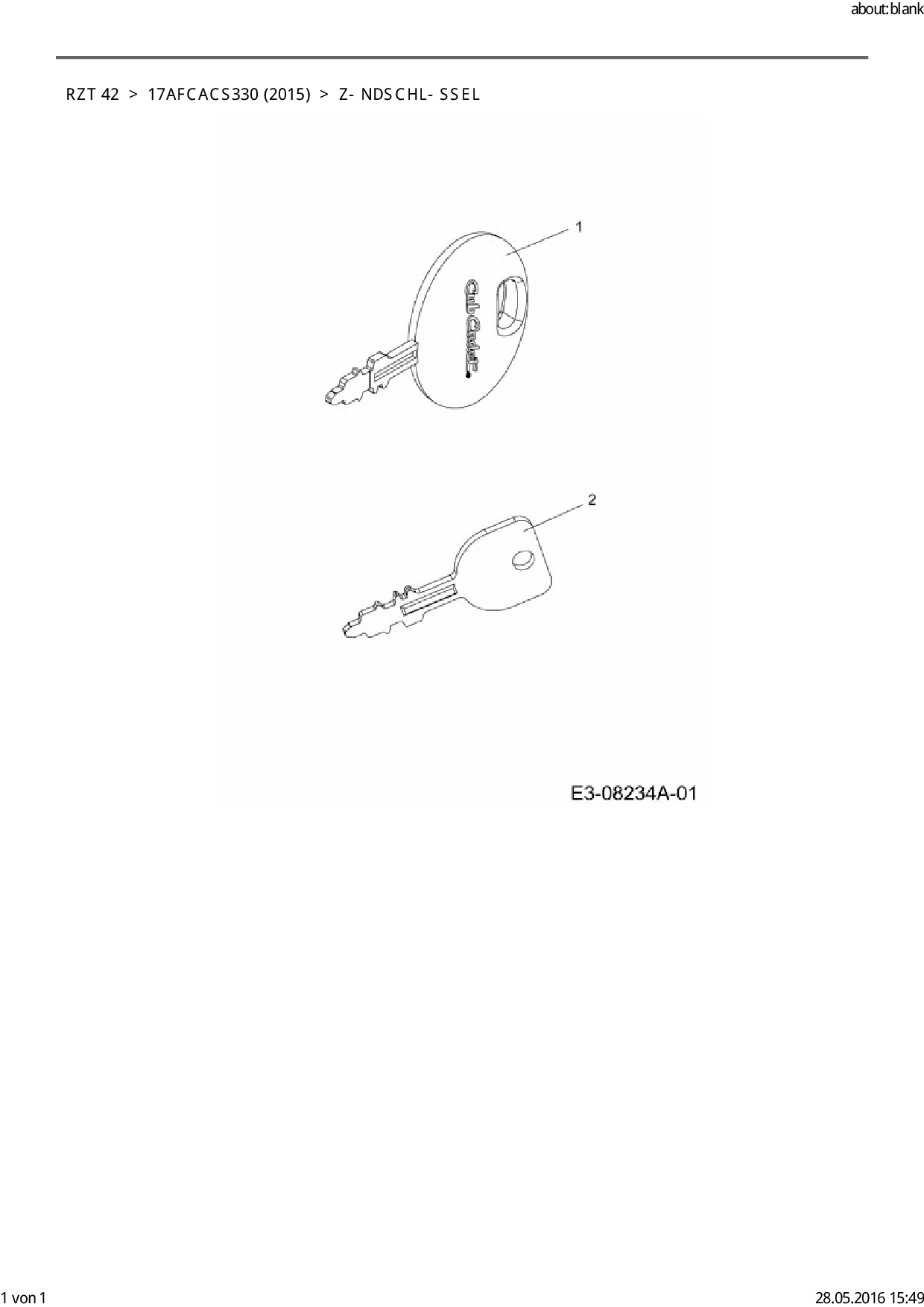 Download Ersatzteil-Zeichnung Cub Cadet RZT 42 Zeichnung Zündschlüssel (PDF-Format)