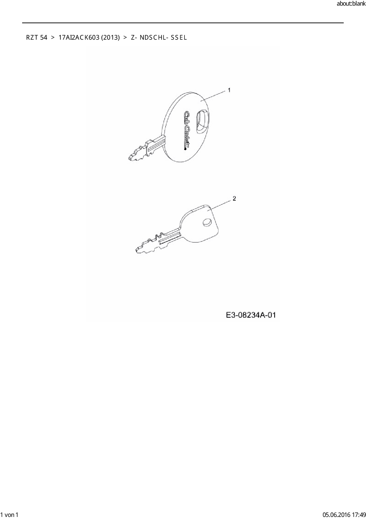 Ersatzteile für Zero Turn Cub Cadet RZT 54 aus der Zeichnung Zündschlüssel: