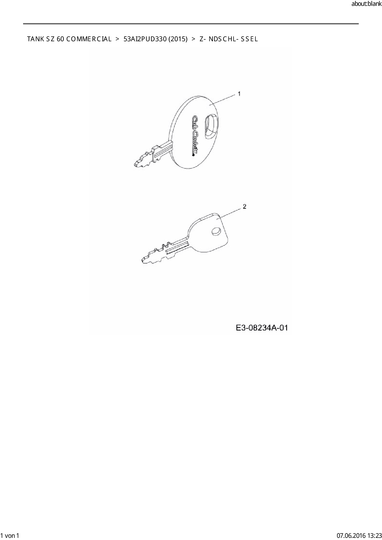 Ersatzteile für Zero Turn Cub Cadet Tank SZ 60 Commercial aus der Zeichnung Zündschlüssel: