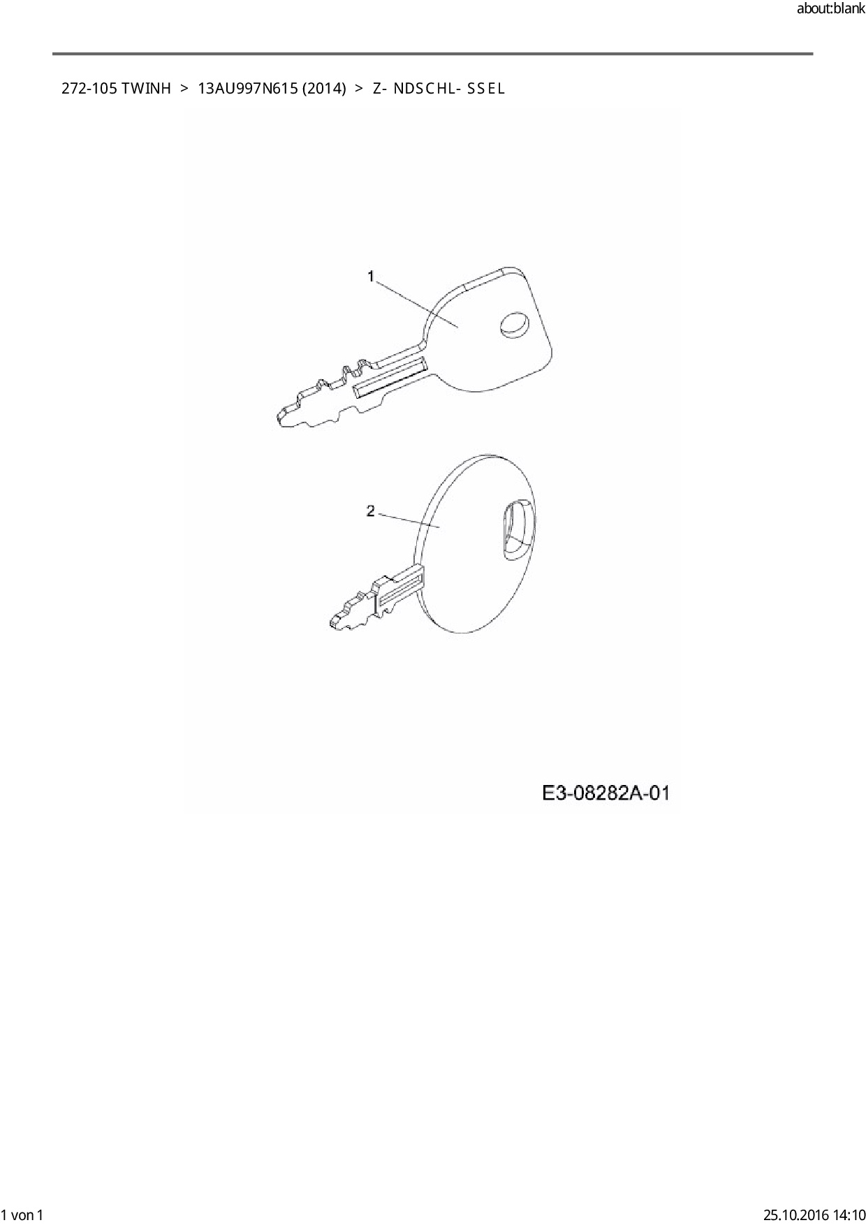 Ersatzteile für Rasentraktor Black Edition 272-105 TwinH aus der Zeichnung Zündschlüssel: