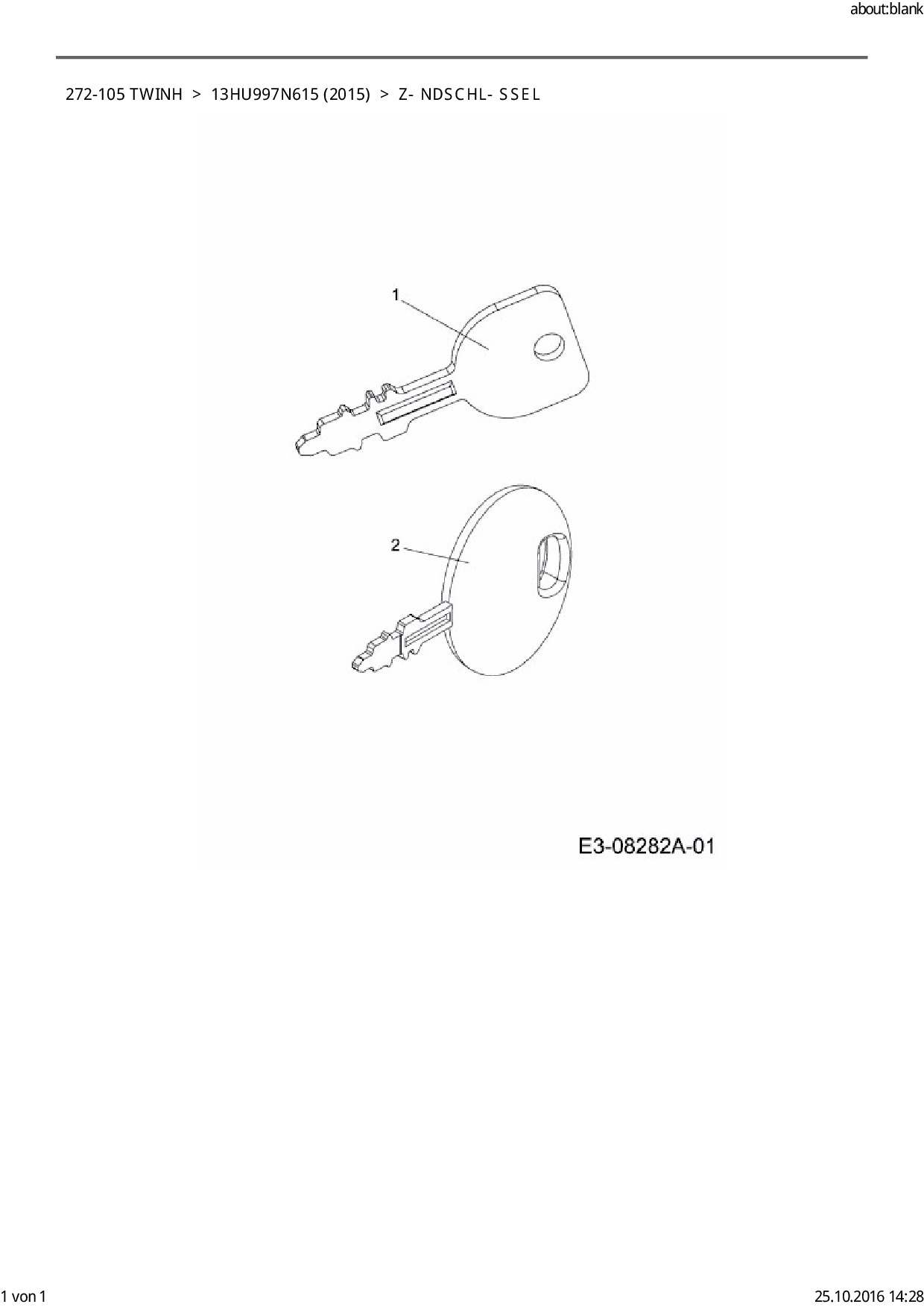 Ersatzteile für Rasentraktor Black Edition 272-105 TwinH aus der Zeichnung Zündschlüssel: