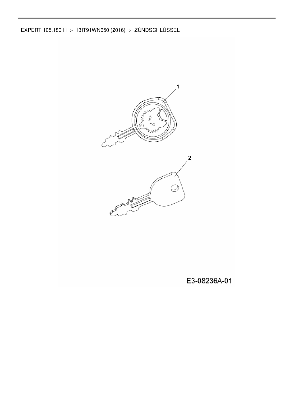 Ersatzteile für Rasentraktor Wolf-Garten Expert Expert 105.180 H aus der Zeichnung Zündschlüssel: