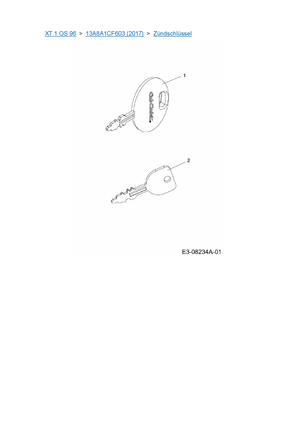 Ersatzteile für Rasentraktor Cub Cadet XT 1 OS 96 aus der Zeichnung Zündschlüssel: