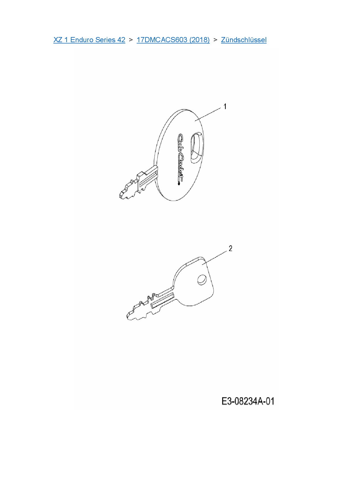 Ersatzteile für Zero Turn Cub Cadet XZ 1 Enduro Series 42 aus der Zeichnung Zündschlüssel: