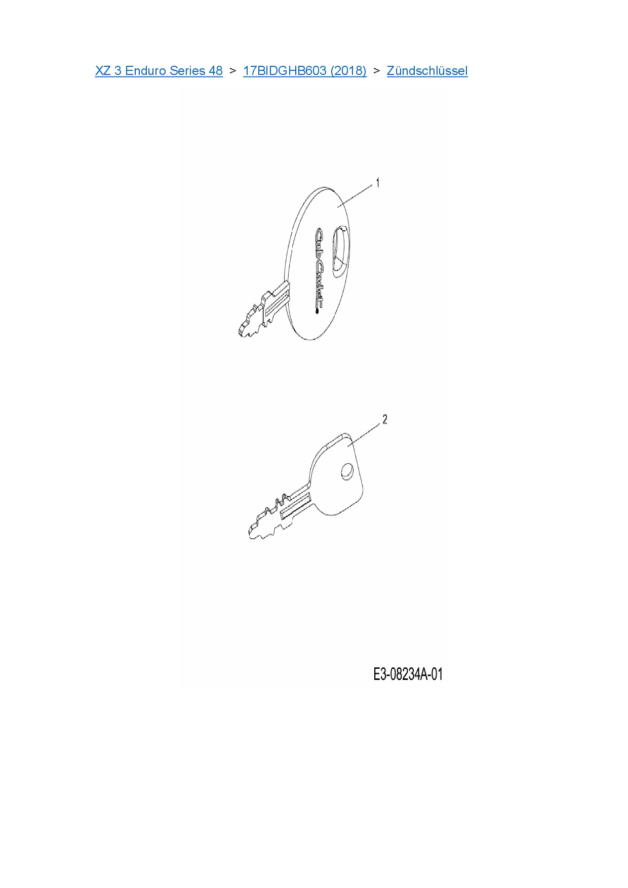 Ersatzteile für Zero Turn Cub Cadet XZ 3 Enduro Series 48 aus der Zeichnung Zündschlüssel: