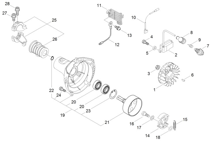 Zeichnung von ECHO Motorsensen Kreiselscheren EKS-230-30UN Zündung, Kupplung, -sgehäuse:
