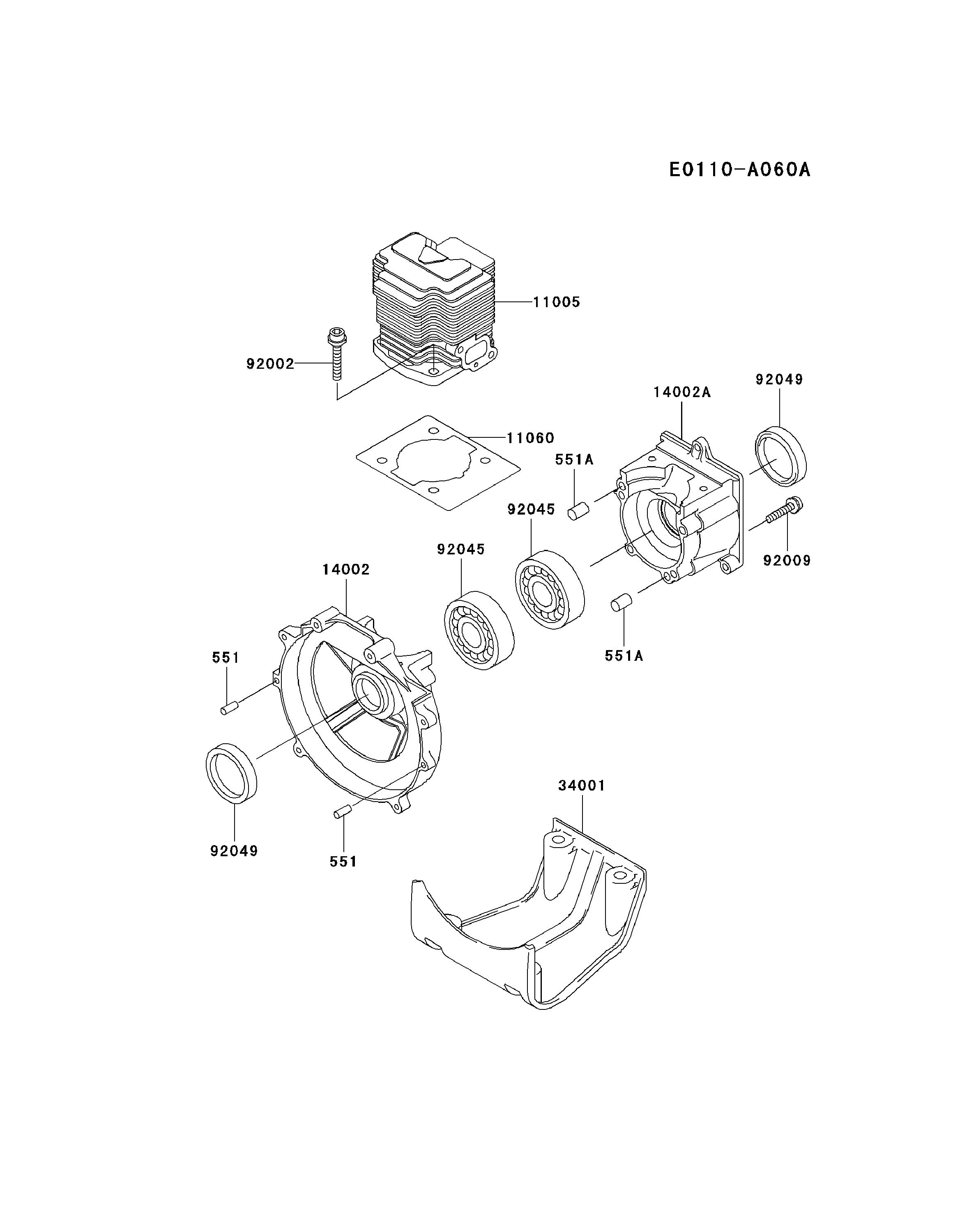 Hier finden Sie alle Ersatzteile von Kawasaki Freischneider HA048F-BT25 (KBH48A) aus der Zeichnung Zylinder/Kurbelgehäuse: