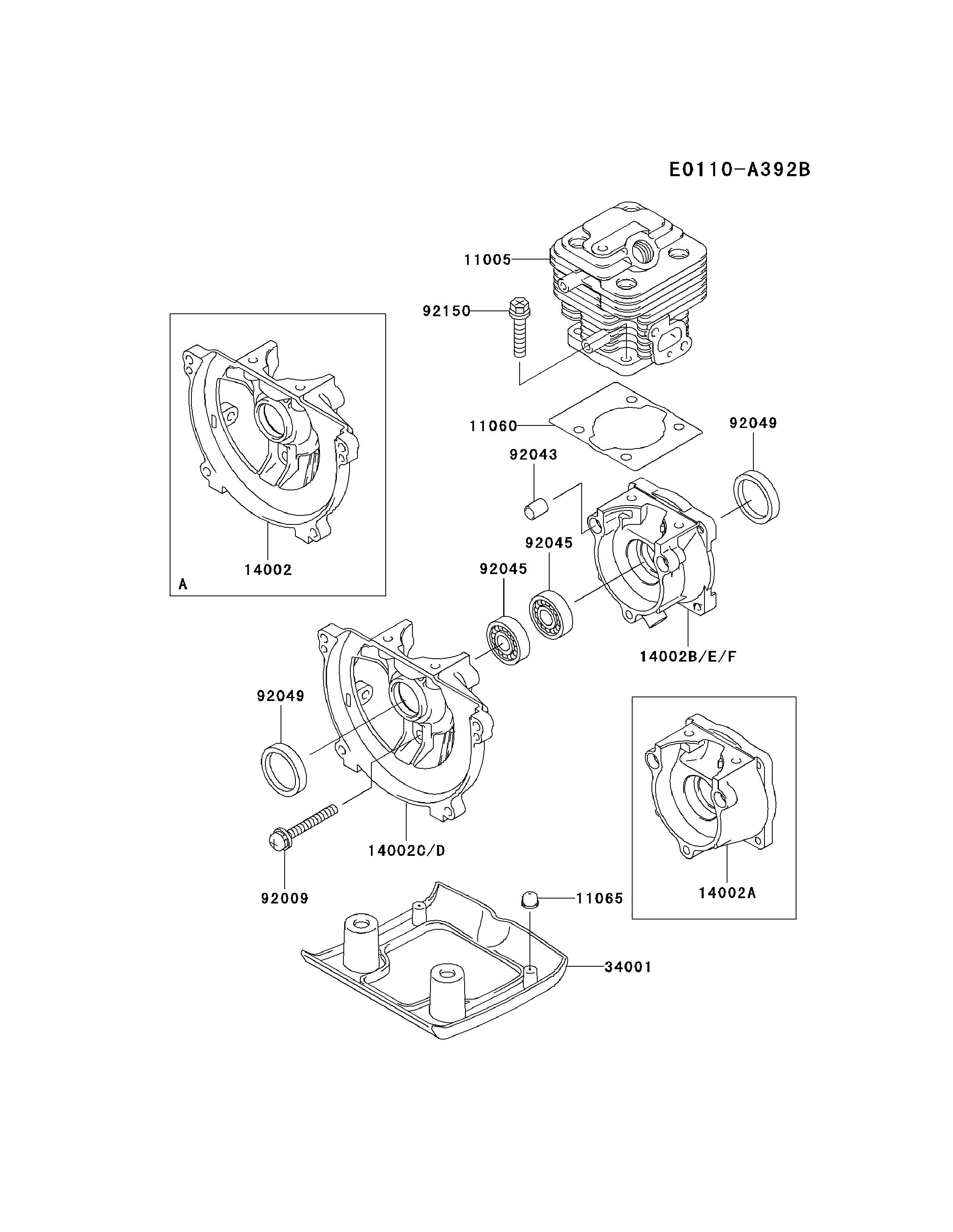 Hier finden Sie alle Ersatzteile von Kawasaki Freischneider HA026F-AS02 (KBL26A) aus der Zeichnung Zylinder/Kurbelgehäuse:
