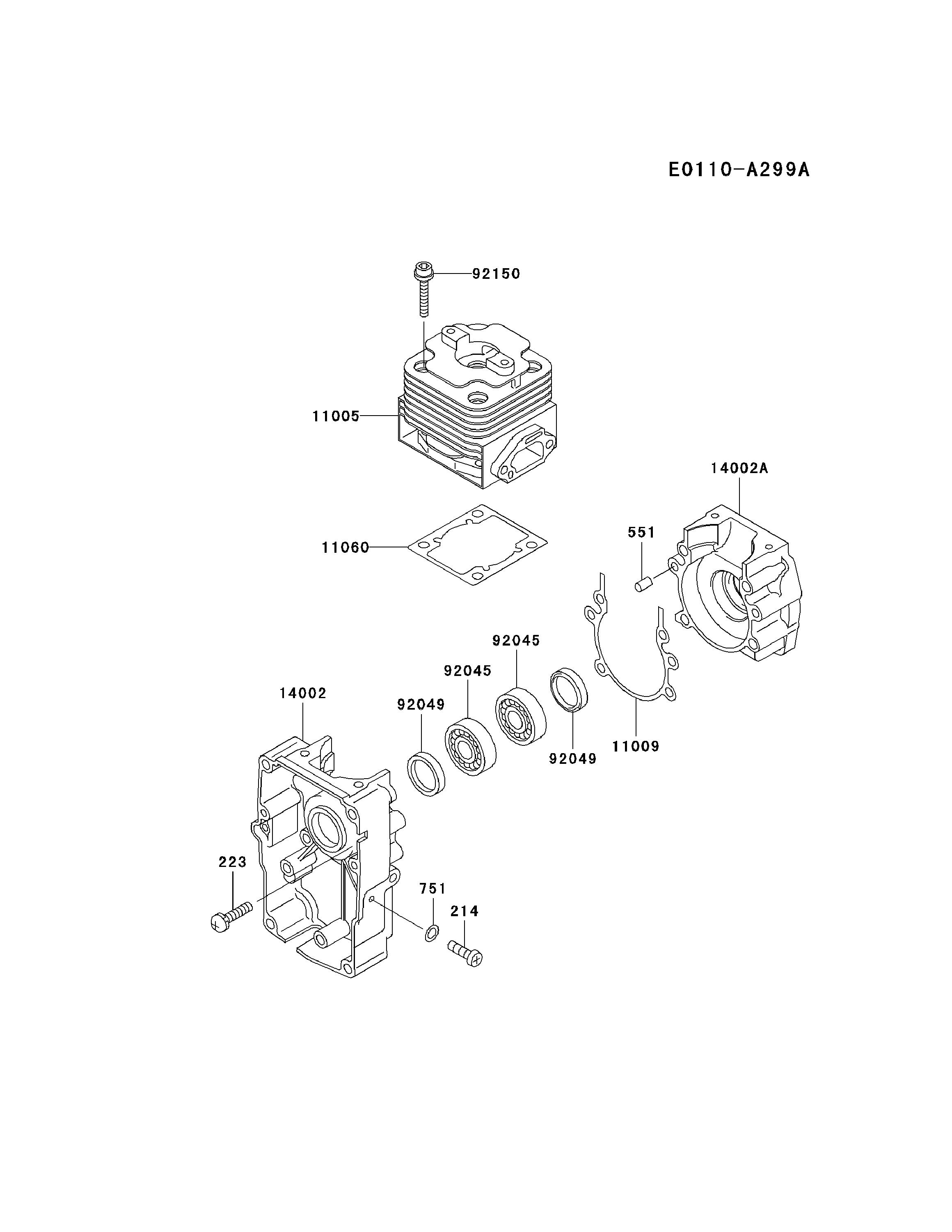 Hier finden Sie alle Ersatzteile von Kawasaki Laubbläser HG400A-AS03 (KRB400B) aus der Zeichnung Zylinder/Kurbelgehäuse: