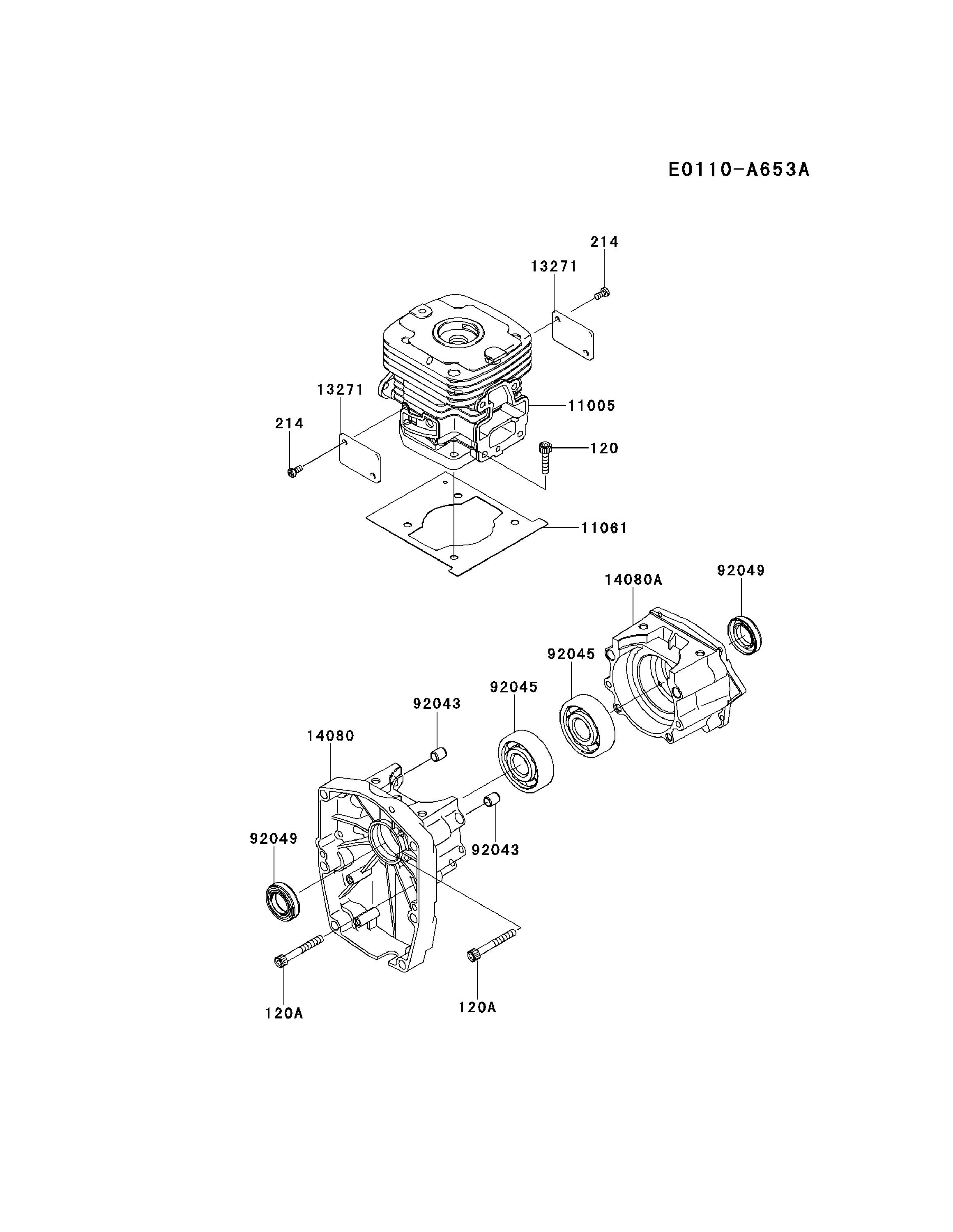 Hier finden Sie alle Ersatzteile von Kawasaki Laubbläser HG750A-HS00 (KRB750B) aus der Zeichnung Zylinder/Kurbelgehäuse: