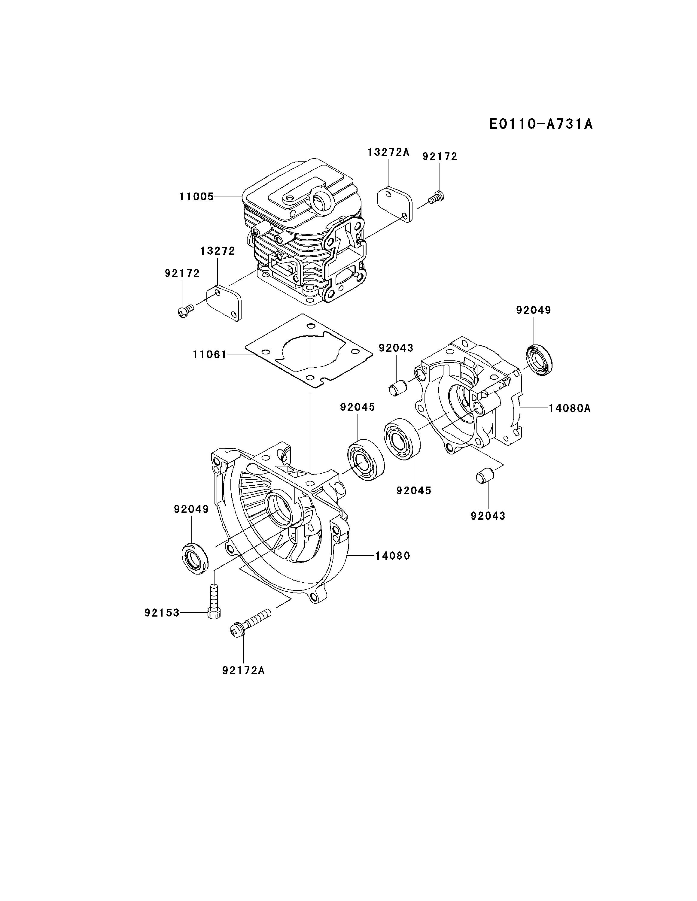 Hier finden Sie alle Ersatzteile von Kawasaki Laubbläser HG300B-BV25 (KRH300A) aus der Zeichnung Zylinder/Kurbelgehäuse: