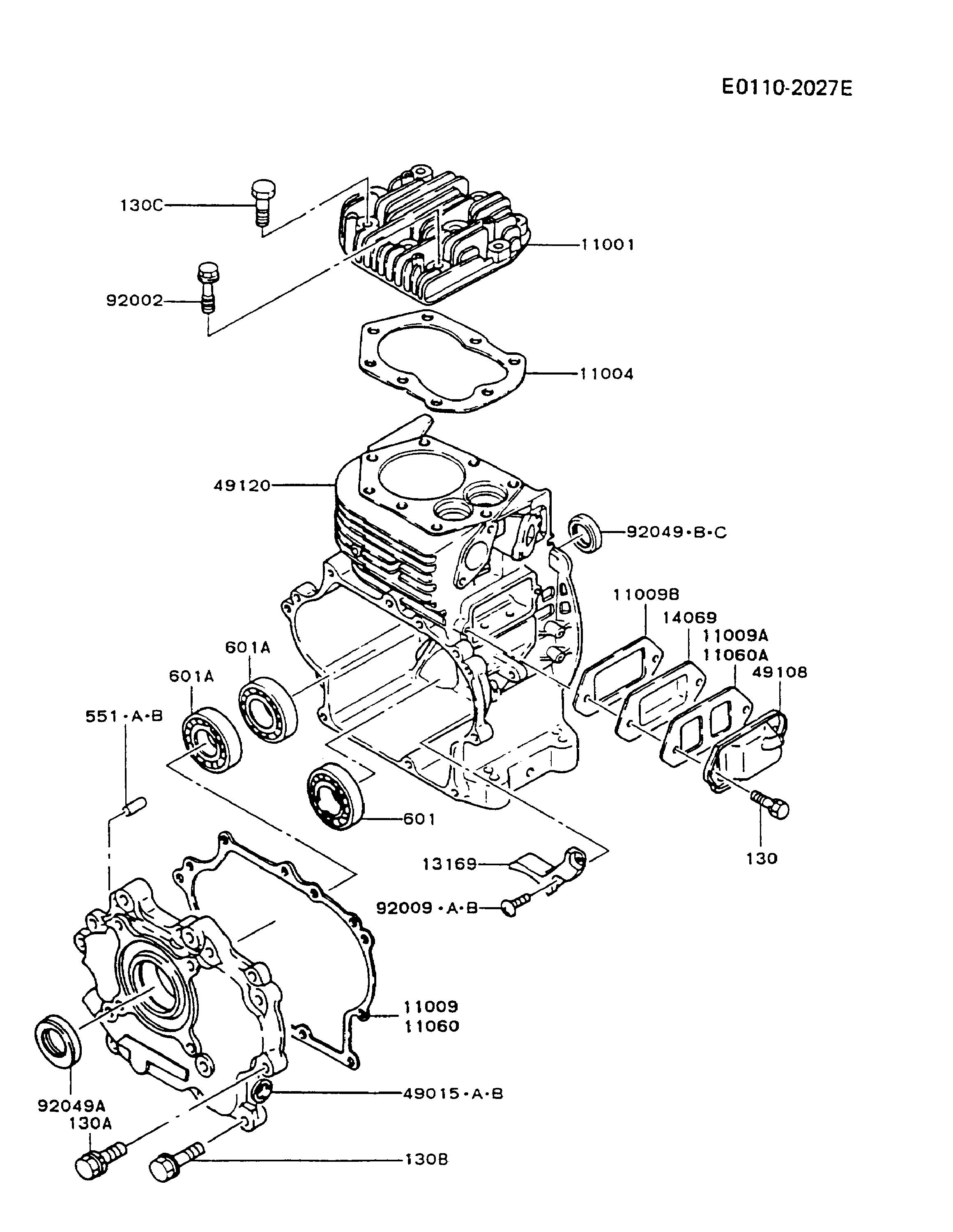 Hier finden Sie alle Ersatzteile von Kawasaki Generatoren GAH20A-AA50 (GA3200A-S) aus der Zeichnung Zylinder / Kurbelgehäuse: