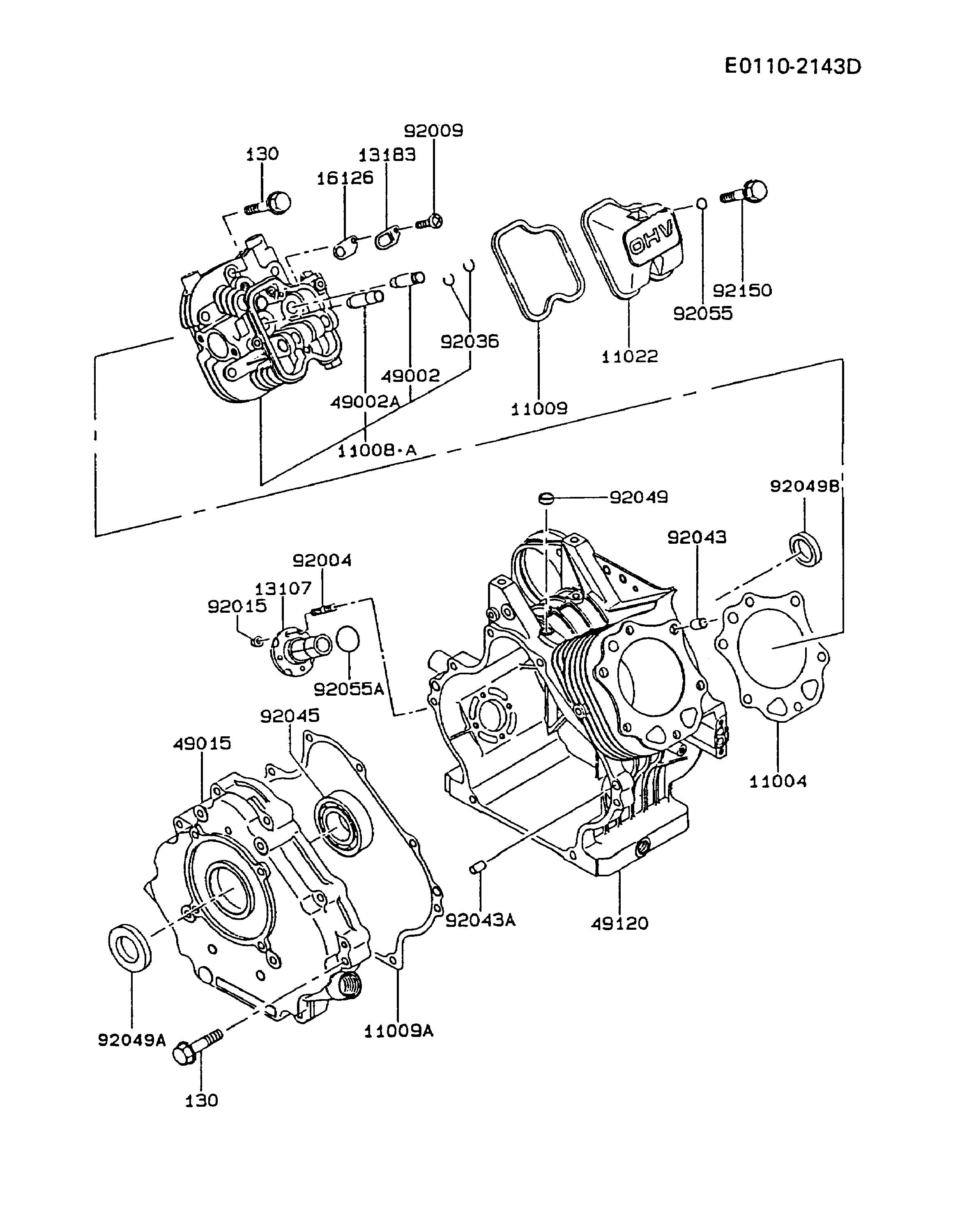 Hier finden Sie alle Ersatzteile von Kawasaki Generatoren GER50A-AA54 (GE4500A) aus der Zeichnung Zylinder / Kurbelgehäuse: