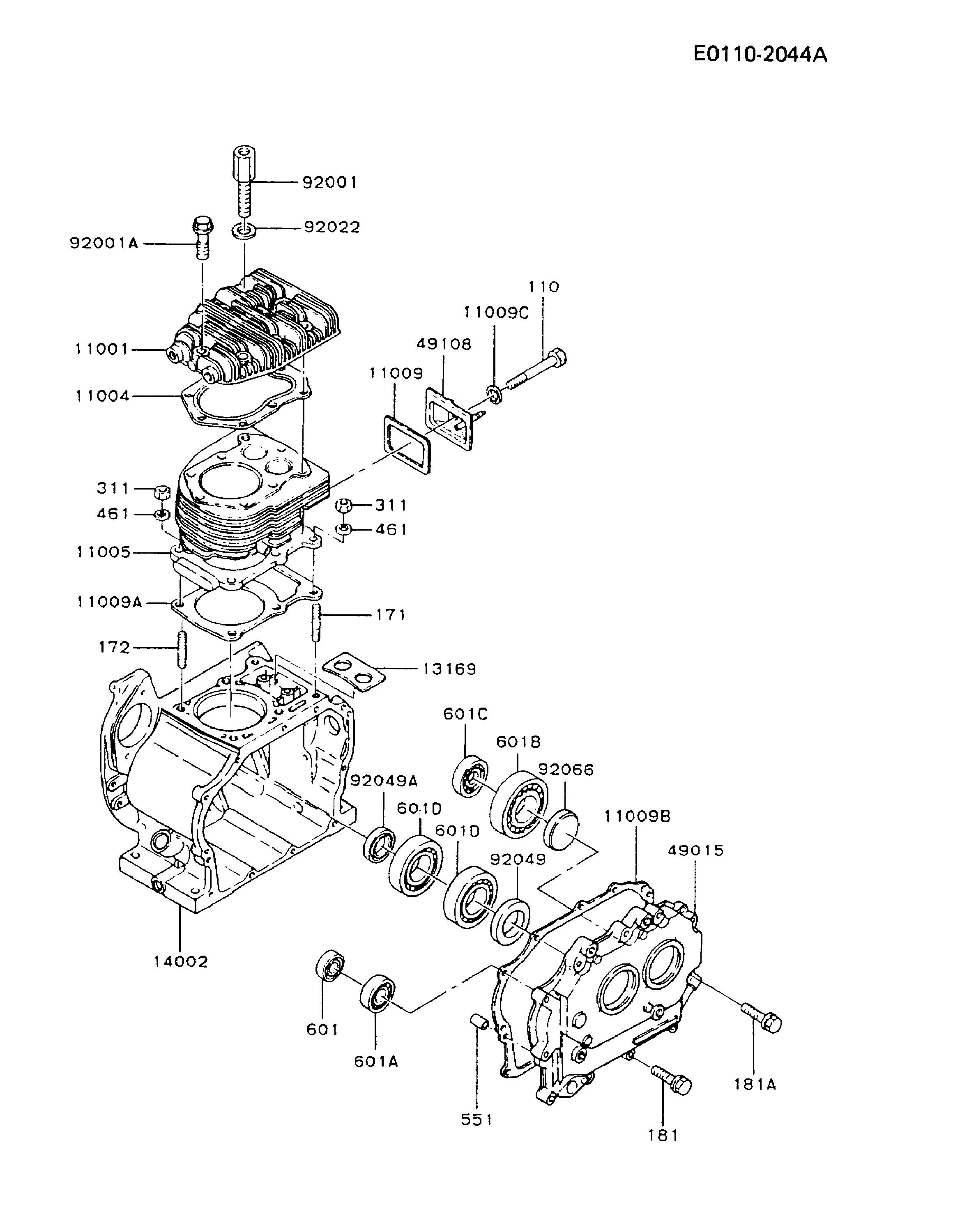 Hier finden Sie alle Ersatzteile von Kawasaki Generatoren GZF00Z-AS97 (KG5000A-S) aus der Zeichnung Zylinder / Kurbelgehäuse: