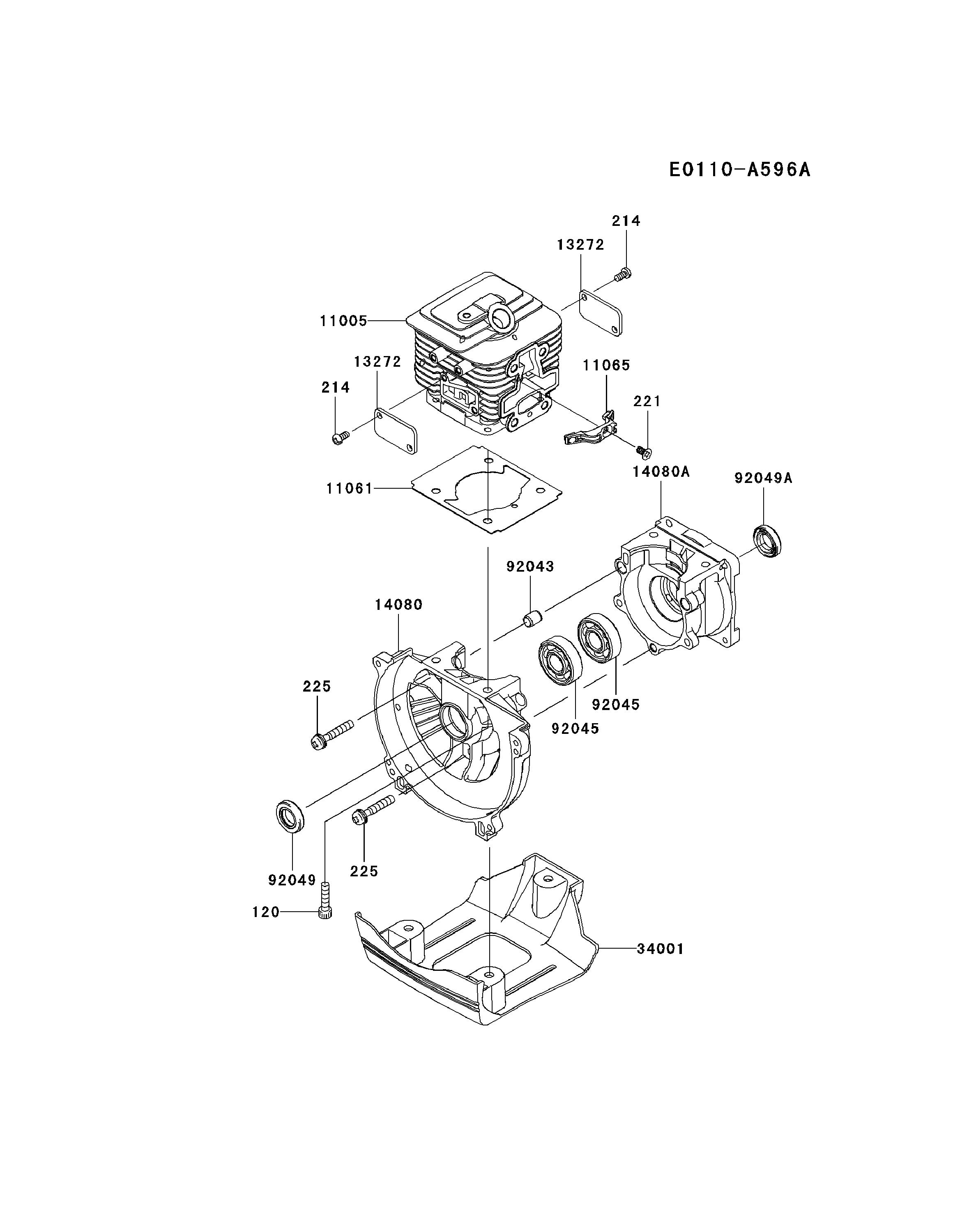 Hier finden Sie alle Ersatzteile von Kawasaki Freischneider HA035B-AS50 (KBH35A) aus der Zeichnung Zylinder/Kurbelgehäuse: