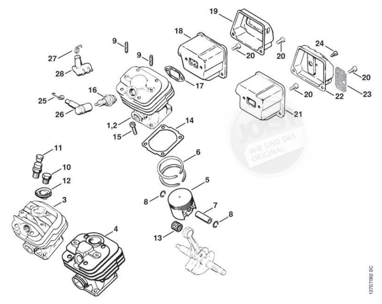 Hier finden Sie alle Ersatzteile von Stihl Benzin-Motorsägen 024 S der Zeichnungsgruppe Zylinder, Schalldämpfer: