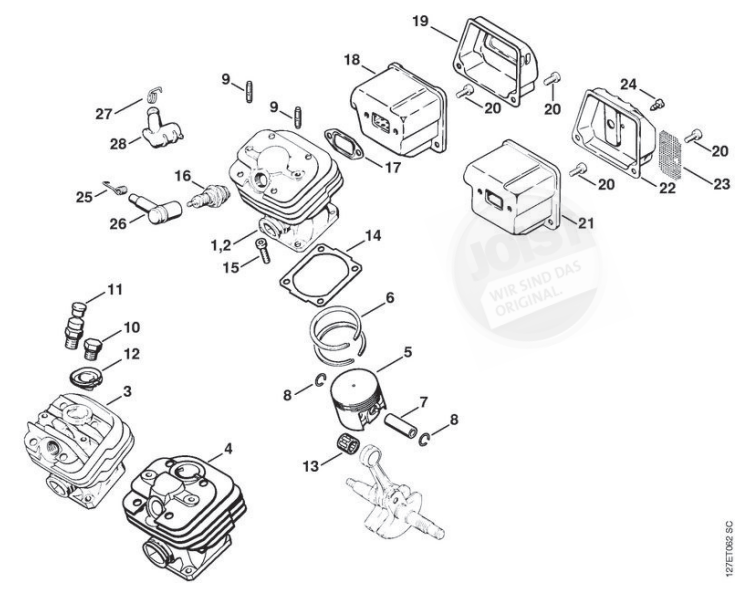 Hier finden Sie alle Ersatzteile von Stihl Benzin-Motorsägen 024 SW, 024 SWVH der Zeichnungsgruppe Zylinder, Schalldämpfer: