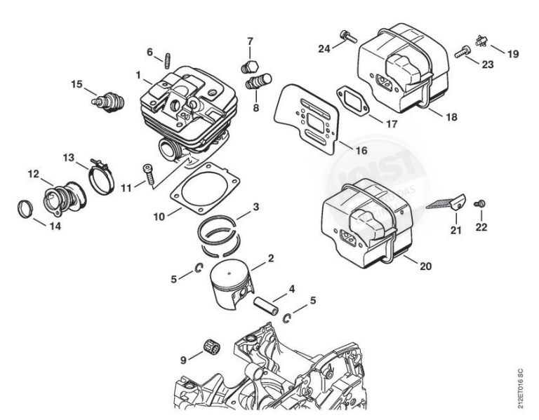 Hier finden Sie alle Ersatzteile von Stihl Benzin-Motorsägen MS 341 der Zeichnungsgruppe Zylinder, Schalldämpfer: