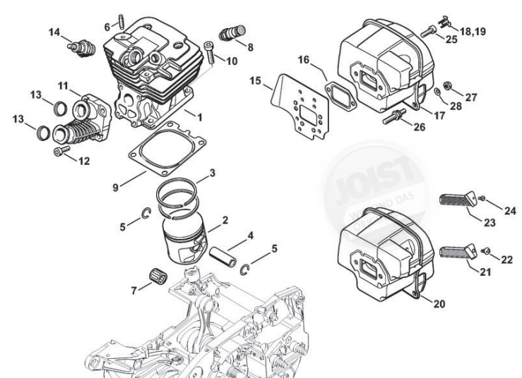Hier finden Sie alle Ersatzteile von Stihl Benzin-Motorsägen MS 441 W der Zeichnungsgruppe Zylinder, Schalldämpfer: