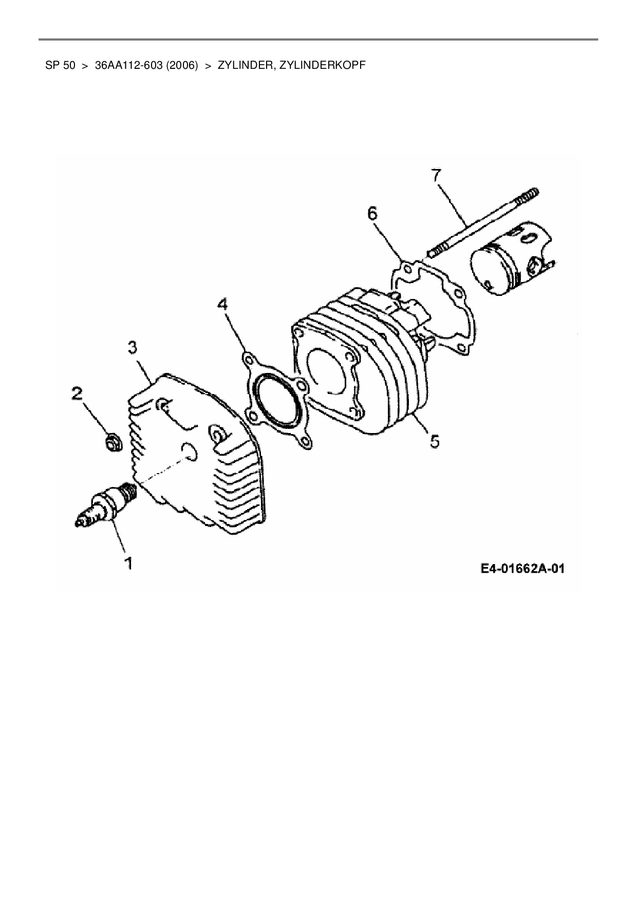 Ersatzteile für Quad Cub Cadet SP 50 aus der Zeichnung Zylinder, Zylinderkopf: