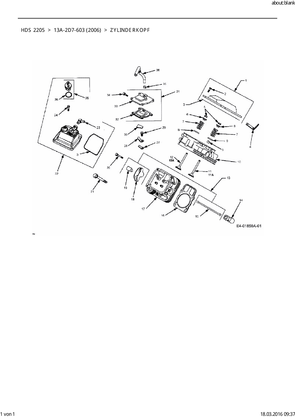 Ersatzteile für Rasentraktor Cub Cadet HDS 2205 aus der Zeichnung Zylinderkopf: