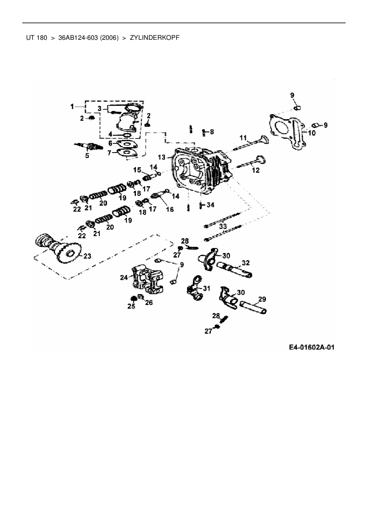 Ersatzteile für Quad Cub Cadet UT 180 aus der Zeichnung Zylinderkopf: