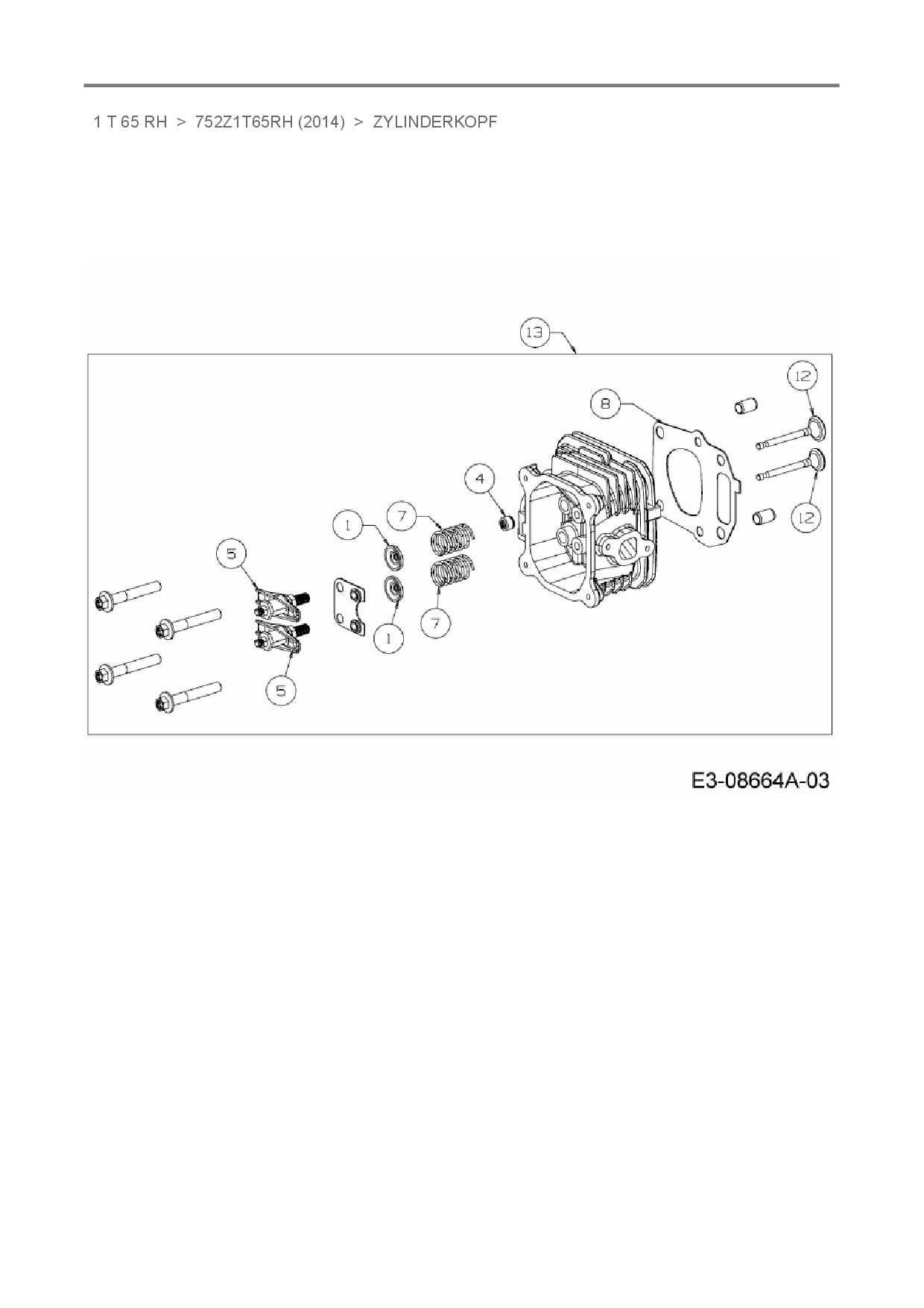 Ersatzteile für Vertikal MTD-Motoren 1 T 65 RH aus der Zeichnung Zylinderkopf: