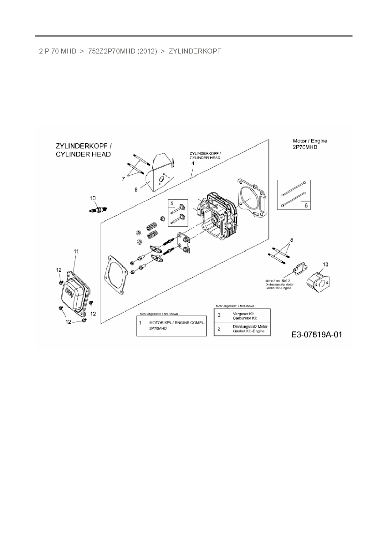 Ersatzteile für Vertikal MTD-Motoren 2 P 70 MHD aus der Zeichnung Zylinderkopf: